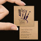 Professional Salon Tools Icon Design Hair Stylist Kraft Business Card. Showcase your expertise with this custom square hair stylist business card featuring a sleek design of professional salon tools—scissors, comb, curling iron, and more. Perfect for stylists who want a clean, modern way to present their contact details, this card includes space for your name, title, and salon information on the back. The minimalist black on Kraft background layout offers a stylish and polished look, ideal for networking, client referrals, or leaving behind at your salon station.