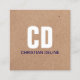 Modern Kraft Paper (printed) White Bold Monogram Square Business Card