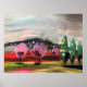 Acrylic modern contemporary painting , landskape. mountains and flowering trees