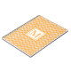 This modern, trendy notebook features a white geometric lattice all-over design with a mango sorbet coloured background. In the centre is a framed monogram letter in the same mango colour.
