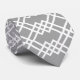 This modern, trendy neck tie features a white geometric lattice all-over design with a grey coloured background. The bold contrast of white lines on a solid grey background makes a strong statement that will update any suit.