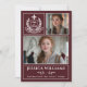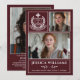 Celebrate your graduate in timeless style with this modern 3-photo Class of 2026 graduation announcement. Featuring a burgundy wine layout, elegant white typography, and a classic white laurel crest “Graduate” emblem, this customizable design beautifully showcases three senior portraits along with the graduate’s name, school, and heartfelt message.