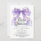 Modern Lavender Bow and Flowers Baby Shower Invitation