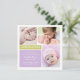 Introduce your baby girl with this modern colour block square birth announcement card. A chartreuse green "Introducing" banner adds a fresh pop of colour above a lavender text block with the baby's name in script, birth details, and a message from the proud parents. Three photo placements showcase your newborn in a square collage layout. The back features a coordinating green accent. All text, colours, and photos are fully customisable.