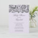 Start off your baby girl baby shower off right with our trendy & elegant grey floral damask swirl Baby shower invitation set on a soft lilac purple background. Just customise our elegant invitation with your baby shower information and you're all set to go. Available in other stylish baby colour combinations in our shop at www.celebrateitinvites.com. Check out our matching thank you notes, stickers and baby buttons in our shop