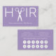 Elevate your salon branding with the Modern Lavender Hairdresser Flat Loyalty Card, designed to leave a bold and stylish impression. Featuring a sleek layout with striking lavender accents, this card reflects confidence, creativity, and modern beauty trends. The clean, professional design makes it easy to track client visits while reinforcing your brand identity. Printed on high-quality cardstock, it offers durability that withstands frequent handling in a busy salon environment. Its compact size fits perfectly in wallets, making it convenient for clients to keep and use. Ideal for rewarding repeat customers, this loyalty card helps build lasting relationships while enhancing your salon’s professional image.