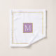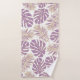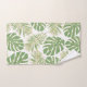 Modern lavender purple and green tropical leaves pattern Bath Towel Set. A beautiful tropical design that includes monstera and palm leaves with gold outline. The bath towel is of purple colour, the hand towel of green and the wash cloth showcases your monogram and a tropical leaf.