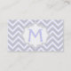 Modern lavender purple, grey, ivory chevron pattern monogram personalised business card. There is a frame with your monogram in the centre. A stylish zig zag design using the classic stripes with contemporary yet vintage look in a sense. You can change background -lavender purple- and monogram colour choosing from over 200 colours from Zazzle colour chart. Elegant, classy and sophisticated design that can be used as personal business cards or for many types of business such as Interiors, crafters, stylists.