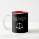 Modern n Attorney law office coffee mug design with a scale of justice symbol and text feds you can customise with your company name, name of your legal practice or just make this an executive gift.