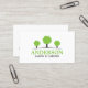 A modern business cards template for lawn care, garden and landscaping businesses. The design features a logo of three trees on the front of the business card, with your business name. The back includes a persons name, the job title, as well as all contact information. The modern lawn care landscaping business card is two sided.