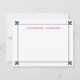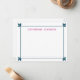This modern stationery design features a border embellished with simple, leaf embellishments in navy blue. Contrasting the navy blue border is your name in purple-pink