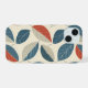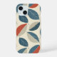 This artwork features a simple yet elegant pattern of stylised leaves, arranged in a harmonious and repeating design. The leaves are rendered in a muted colour palette of teal, beige, and terracotta, set against a soft cream background. Each leaf is defined by clean, smooth lines with subtle vein details, creating a modern and minimalist aesthetic. The alternating colours and orientation of the leaves add visual interest and balance to the composition, resulting in a refined and contemporary design