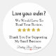 A classic "leave a review" packaging sticker to place on your orders going out.