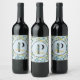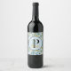Modern Leaves Navy Gold Monogram "Letter P" Wine Label