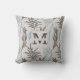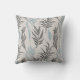 Modern Leaves Pattern Cream Brown Custom Monogram Throw Pillow. A contemporary and modern design using vintage botanical illustration. Simple and stylish combination of blue, dark grey and neutral. Change the name to personalise it.