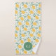 Cute Colourful Rustic Lemon Citrus Yellow Green White Chic Summer Tropical Greenery Leaves Fruit Pattern Monogram Bath Towels
