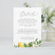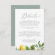 This modern lemon garden details enclosure card is perfect for a spring or summer wedding. The rustic mediterranean design features bright and beautiful watercolor lemons with bohemian white flowers and elegant green leaves.
