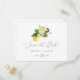 This modern lemon garden save the date postcard is perfect for a spring or summer wedding. The rustic mediterranean design features bright and beautiful watercolor lemons with bohemian white flowers and elegant green leaves.