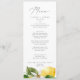 This modern lemon garden wedding dinner menu card is perfect for a spring or summer wedding. The rustic mediterranean design features bright and beautiful watercolor lemons with bohemian white flowers and elegant green leaves. This menu can be used for a wedding reception, rehearsal dinner, or any event.