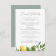 This modern lemon garden wedding travel details enclosure card is perfect for a spring or summer wedding. The rustic mediterranean design features bright and beautiful watercolor lemons with bohemian white flowers and elegant green leaves.