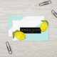 This trendy and modern business card features two yellow lemons on geometric white and turquoise / mint green colour block background. Personalise it for your needs. Perfect for nutritionists, event planners, wedding planners, consultants, food stylists, chefs, pastry chefs, graphic designers, writers, interior designers, and any business professionals. You can find matching products at my store.