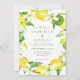 A watercolor wreath of lemons, leaves and lemon blossoms decorates this pretty wedding invitation with the reverse side coordinated in a vibrant green. Easily personalise with all of your important details.