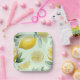 Modern lemon yellow floral script bridal shower paper plate