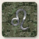 Modern Leo Zodiac Sign on Green Digital Camo Coaster