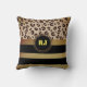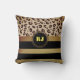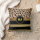 Modern Leopard Print Golden Black Strips Monogram Cushion