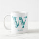 Elevate your morning routine with a customisable coffee mug showcasing a striking teal letter W in unique typography. Personalise it with your name using our easy customisation feature, making each sip a special experience!