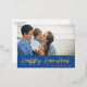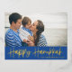 Modern Lettering Blue Happy Hanukkah Photo Foil Holiday Postcard