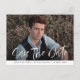 Modern lettering graduation save the date postcard