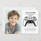 Make your gamer boy’s birthday extra special with this modern photo invitation! Featuring a bold game controller design and a space for your child’s photo, this layout displays the picture and party details side by side. Easy to customize with your child’s age and event info.