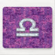 Modern Libra Zodiac Symbol on Fuchsia Digital Camo Mouse Pad