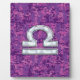 Modern Libra Zodiac Symbol on Fuchsia Digital Camo Plaque