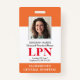 Modern Photo ID LPN Nurse Badge. Design featuring of medical orange and white background, single photo, hospital name, profession and name. Personalize with your bar code and contact details. Modern ID badges make it simple for customers and clients to identify employees. To edit this template click customize further.