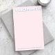 Sticky notes with your name in a bold white font with a light blue shadow on a pale pink background.