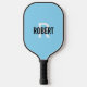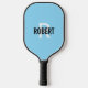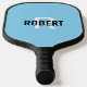 Modern light blue white monogram name mens pickle ball paddle. Personalise with your name and initial.