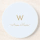 Modern Light Dusty Blue Gold Script Monogram Coaster