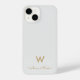 A modern, elegant monogram design with gold handwritten minimalist script typography and sans serif block typography on an elegant pale pastel Light Grey background. The monogram and name can be easily personalised.