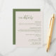 A simple and minimal olive green and grey wedding details card, designed with simple and script lettering, and a floral elegant on the back. Customise with your own wedding reception, accommodations, and rsvp details.