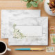Modern Light Grey White Floral Gold Marble Wedding Envelope