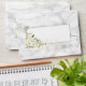 Create the perfect wedding invitation set with this pretty, elegant envelope design, featuring light grey watercolor white floral design, featuring a custom floral bouquet of neutral shades of white, ivory, and champagne, along with botanical greenery and faux gold dust, on the flap and on the front, with a faux Carrera marble background, both inside and out! To finish it off, a light grey border around the address box. Part of an invitation suite. Copyright Elegant Invites, all rights reserved.