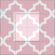 Custom fabric features a white geometric Moroccan quatrefoil pattern with light ballet pink (can be modified) background colour.
