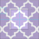 Custom fabric features a white geometric Moroccan quatrefoil pattern with light lavender purple (can be modified) background colour.
