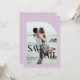 Modern, Light-Purple Photo-Save the Dates Card. Personalised in minutes. Add your data and you can choose the font, colour, size and position individually by clicking on "Personalise more".