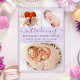 Baby Girl Pastel Lilac Lavender Birth Announcement 3 Photo Collage Cards. Elegant birth announcement featuring 3 of your favourite baby photos on front, with a pretty hand lettered text „introducing” in a swirly calligraphy script with swash-tails font on lilac, lavender or light purple colour background. Add your baby's name on the front and birth stats. At the back side one vertical baby photo on white dots soft lilac background. You can easily personalise it.