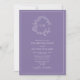 Modern Lilac Lavender Leafy Crest Monogram Wedding Invitation