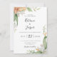 Modern watercolor botanical floral frame, wedding invitation. Ivory white and peachy orange lilies with delicate greenery. Romantic typography design style template. Back of card features coordinating solid sage green colour.