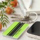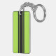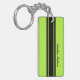 A modern personalizable mens fashion keychain with sporty lime green and black racing stripes. Personalise by adding your name to this cool neon sports car striped set just for guys.